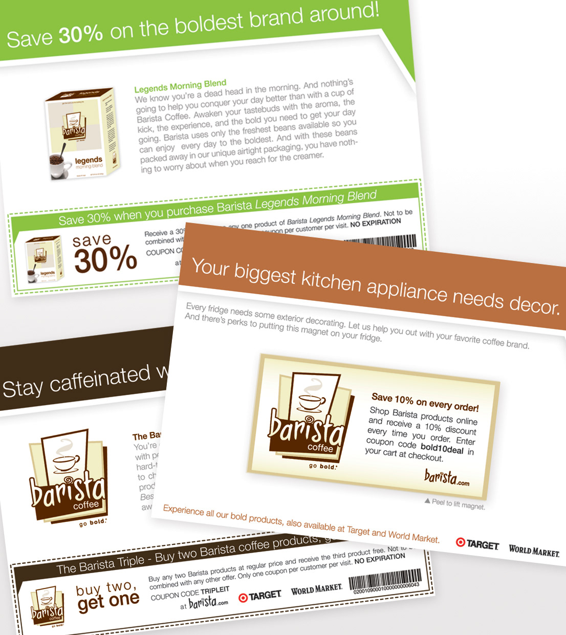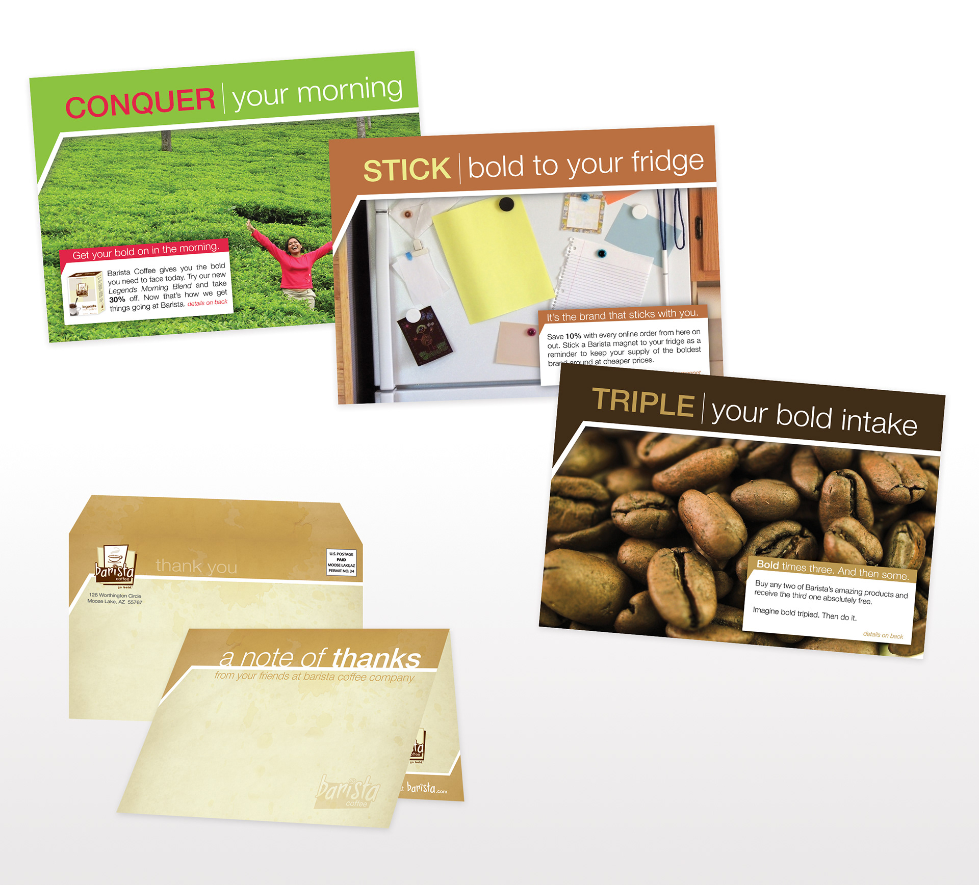 A direct mail piece created for fictional Barista Coffee Company.