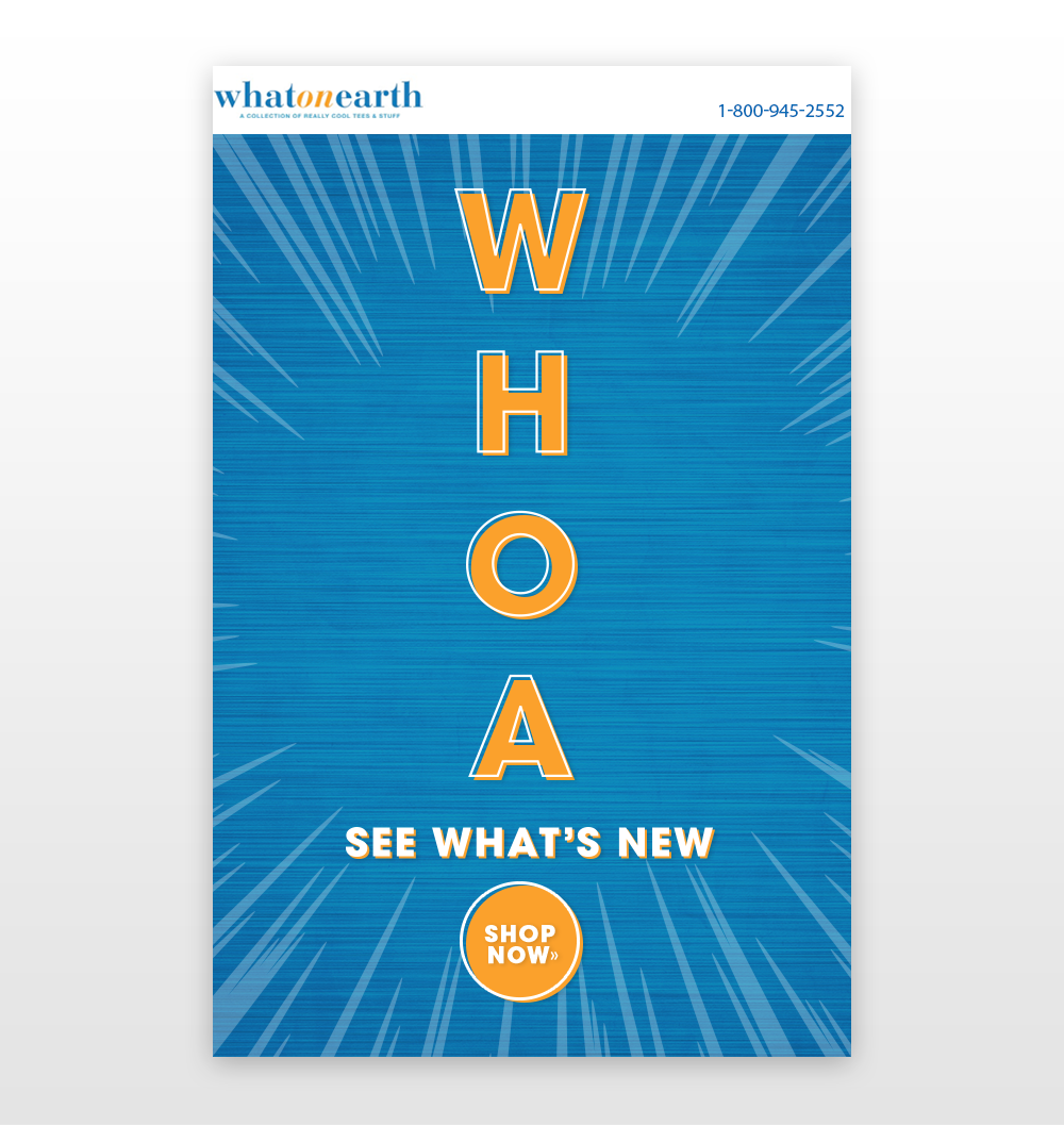 An email design for What on Earth Catalog, showcasing new products online. Designed during my time working for Universal Screen Arts in the e-Commerce department.